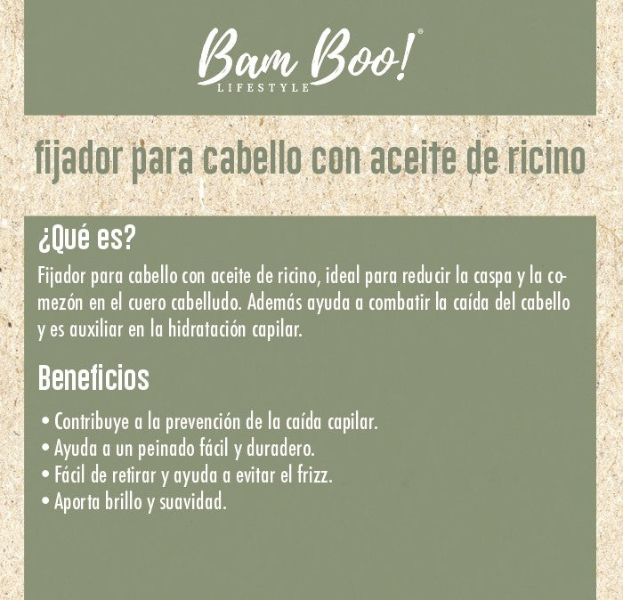 Bam Boo Fijador Natural Para Cabello Ricino ofrece una serie de beneficios impresionantes que te encantarán. Su fórmula ligera ayuda a mantener la forma y definición de tus rizos durante todo el día, sin dejar residuos ni sensación pegajosa. Además, está enriquecido con extractos de bambú que aportan hidratación y fortaleza al cabello, minimizando el frizz y mejorando la manejabilidad. Ideal para aquellos que buscan un acabado natural, este fijador es libre de químicos agresivos, lo que lo convierte en una opción segura y amigable con tu cabello.