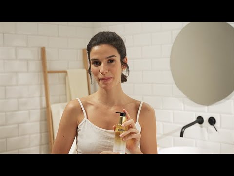 Aplicar 2 o 3 pulsaciones de producto en las manos secas y extender el aceite con movimientos circulares por todo el rostro seco. Para desmaquillar los párpados y pestañas, usar la yema de los dedos y frotar suavemente, siempre con los ojos cerrados, de arriba hacia abajo. Humedecer la piel con agua tibia y masajear el aceite hasta que se transforme en una emulsión ligera. Enjuagar el rostro con agua tibia y secar la piel a toques con una toalla.