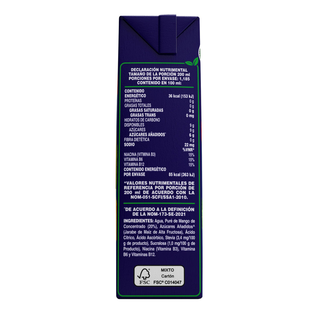 - Ingredientes: Puré de mango, agua, azúcar y conservantes naturales.