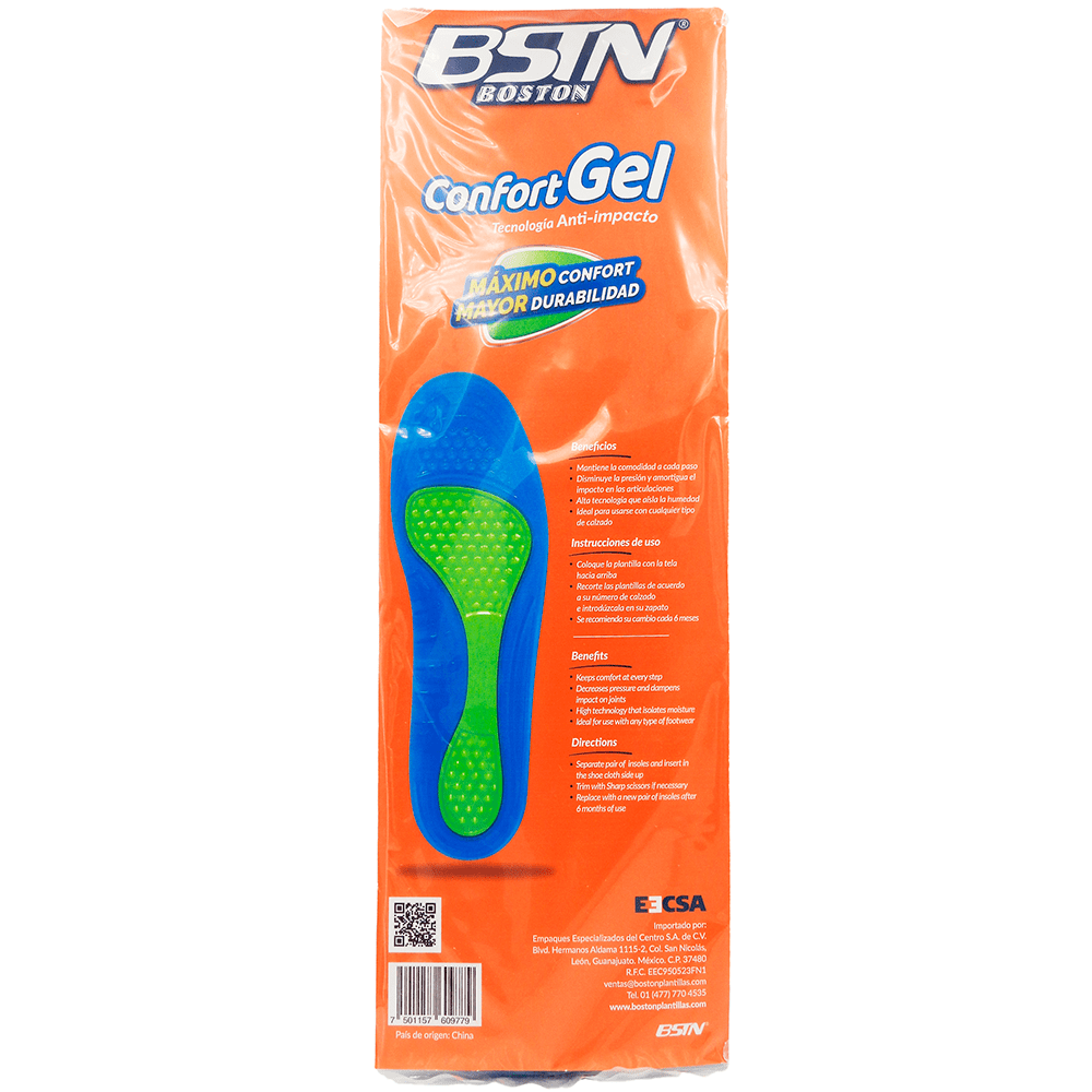La Plantilla Boston Confort Gel Caballero Talla 610 está diseñada para proporcionar un soporte óptimo y una amortiguación excepcional. Gracias a su avanzada tecnología de gel, estas plantillas absorben el impacto, reduciendo la tensión en tus pies y articulaciones. Además, su diseño ergonómico se adapta perfectamente a la forma de tu pie, ofreciendo una sensación de confort durante todo el día. Olvídate de las molestias y disfruta de tus actividades diarias con total libertad.