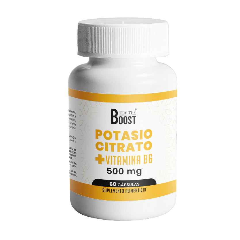 El Citrato de Potasio 500 mg + Vitamina B6 de Healthy Boost se presenta en cápsulas fáciles de tragar y contiene: