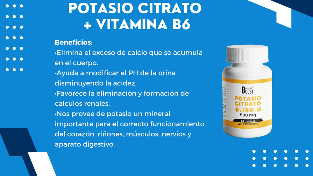 El Citrato de Potasio 500 mg + Vitamina B6 de Healthy Boost ofrece una variedad de beneficios que pueden transformar tu rutina diaria. Entre sus principales ventajas se encuentran: