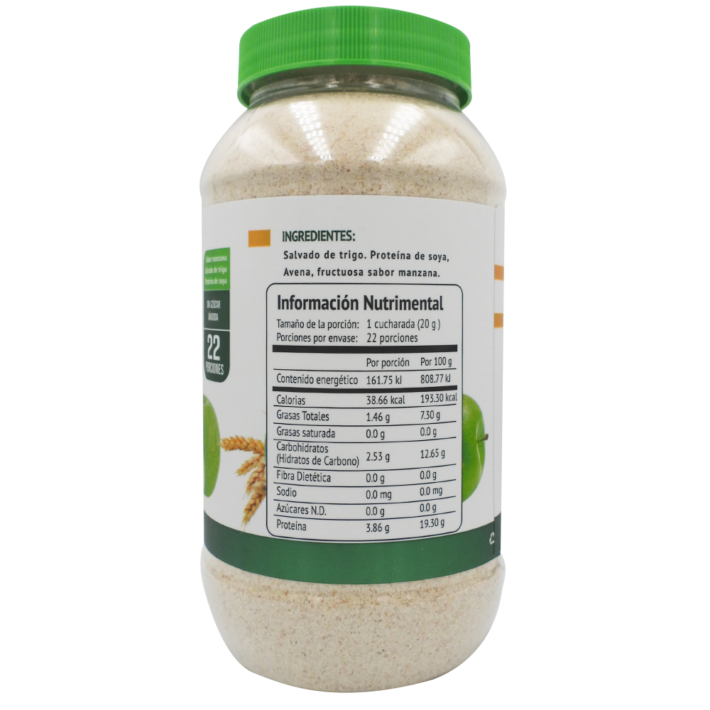 Fibra de salvado de trigo, proteína de soya, sabor a manzana