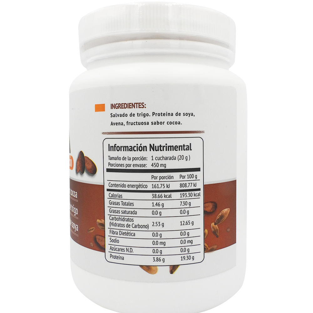 Fibra Salvado Trigo/Proteina Soya Cocoa está indicado como un suplemento alimenticio para ayudar a mantener una adecuada salud intestinal y digestiva. Se recomienda su uso en dietas que buscan aumentar la ingesta de fibra, lo que puede contribuir a la regulación del tránsito intestinal. Además, la proteína de soya es una fuente de proteína vegetal que puede ser útil para aquellos que buscan complementar su ingesta proteica, especialmente en dietas vegetarianas o veganas. Este producto también puede ser utilizado como parte de un régimen de control de peso, al promover una sensación de saciedad y ayudar a reducir el apetito.