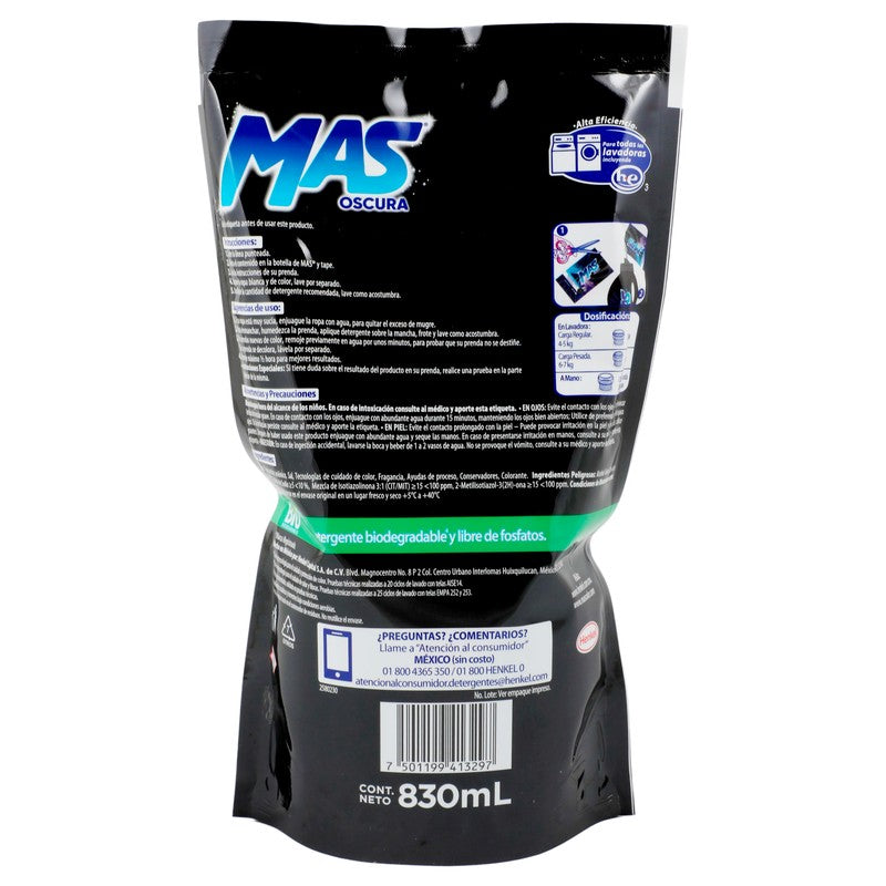 Detergente Liquido Mas Oscura Intenso 830 Ml